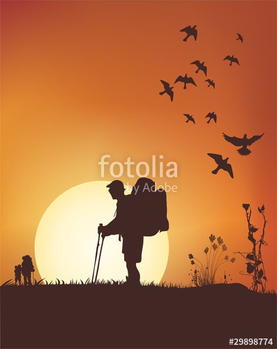 Tú porte erguido y firme, tu bordón de apoyo suave. Tú sombrero bien calado y tus alforjas al hombro, me anuncian que el viaje es largo.